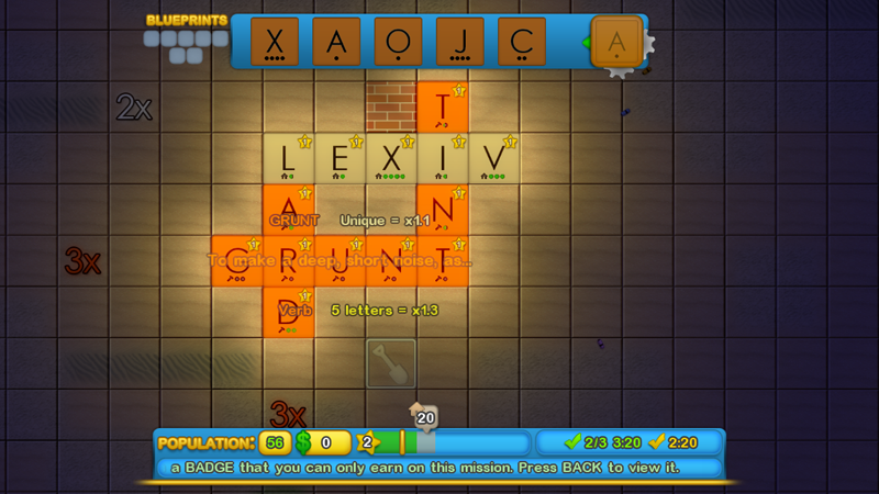 "Lexiv is 3 games in one. It’s Scrabble, first and foremost, even the quickest glance at the screenshots peppering this page will tell you that. Lexiv is also Sim City and Tower Defense, and rather than simply being a gimmick it actually pulls off being all 3 at once with a startling display of elegance. And this is from a guy who is quite possibly the worst scrabbler ever." -- XboxHornet
